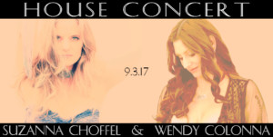 Suzanna Choffel Wendy Colonna house concert banner wendy2017-07-27T22:35:47-05:00July 27th, 2017| Share This Story, Choose Your Platform! FacebookXRedditLinkedInTumblrPinterestVkEmail Leave A CommentYou must be logged in to post a comment.